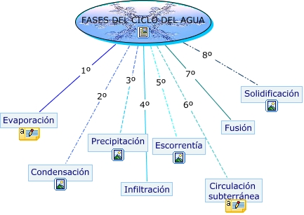 Este Cmap, tiene información relacionada con: Fases Ciclo Agua, FASES DEL CICLO DEL AGUA 8º Solidificación, FASES DEL CICLO DEL AGUA 3º Precipitación, FASES DEL CICLO DEL AGUA 7º Fusión, FASES DEL CICLO DEL AGUA 1º Evaporación, FASES DEL CICLO DEL AGUA 6º Circulación subterránea, FASES DEL CICLO DEL AGUA 4º Infiltración, FASES DEL CICLO DEL AGUA 2º Condensación, FASES DEL CICLO DEL AGUA 5º Escorrentía